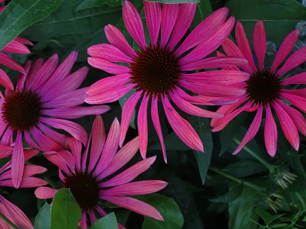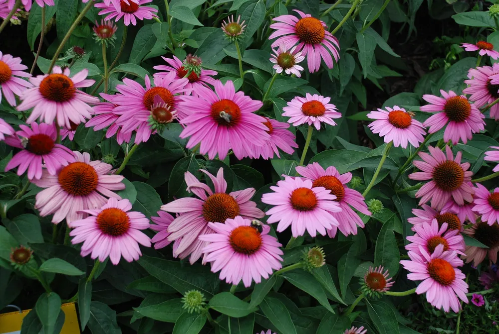 По сравнению с классическими видами эхинаций, ‘Руби Глоу’ имеет более массивные цветы и более густую листву.