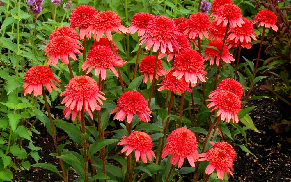 - Мульчирование. После посадки эхинацеи рекомендуется замульчировать почву вокруг растения слоем мульчи (например, из щепы или компоста) толщиной 2-3 см. Это поможет сохранить влагу в почве, подавить рост сорняков и защитить корни от перегрева.