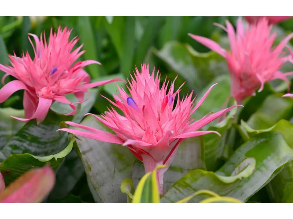 В семействе бромелиевых эхмеи отличаются своими яркими и разнообразными цветами, а также формой листьев. Например, эхмея «Руби» имеет красные листья с темно-зелеными полосами, а эхмея «Снежная королева» отличается белыми соцветиями с фиолетовыми прожилками.