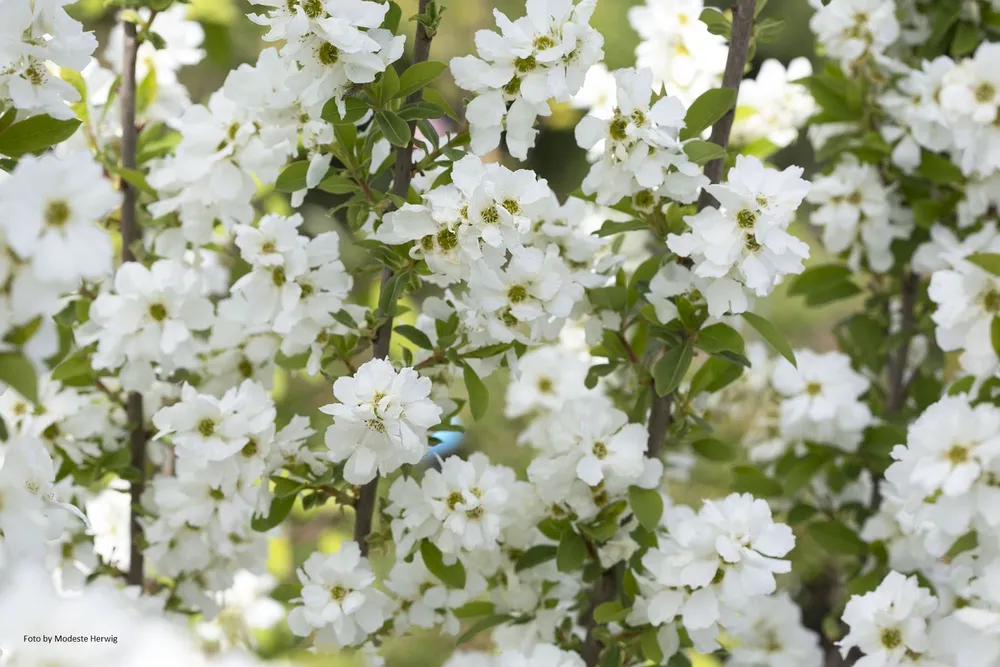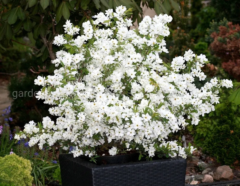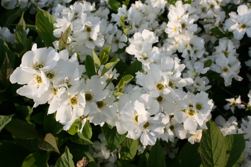 Экзохорда Племенная — это популярный сорт с яркими розовыми цветками, а Экзохорда Снежная королева — отличается белоснежными цветами.