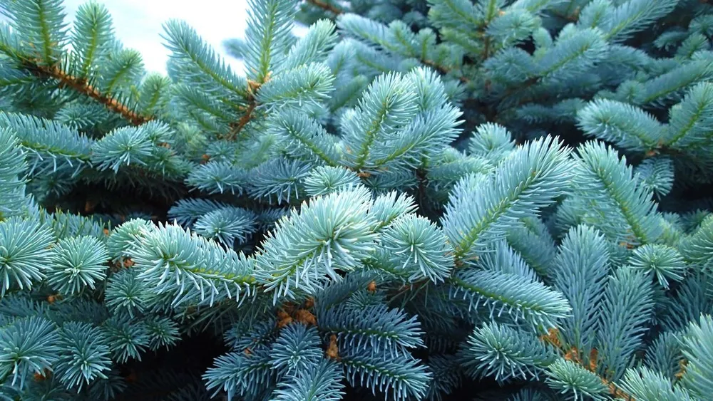 также обладает голубым оттенком, но ее иглы мельче и гуще, чем у ели голубой.