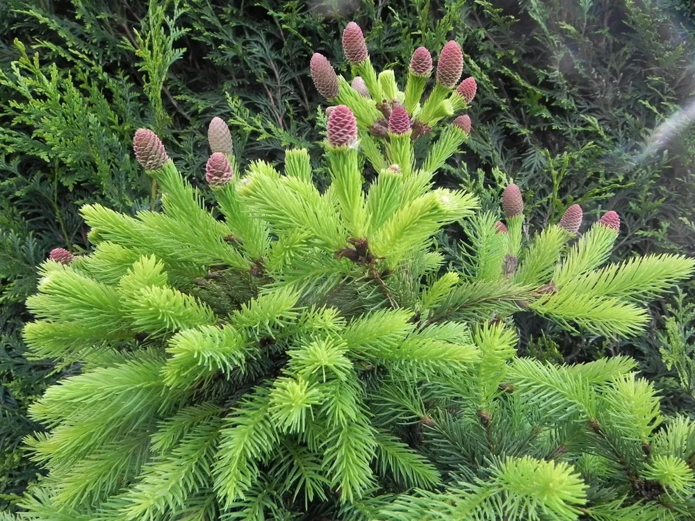 Ель обыкновенная ‘Акрокона’ – это декоративный сорт ели, который покорил сердца садоводов своим изящным силуэтом и густой кроной. Он был выведен в конце XIX века в Германии и с тех пор стал одним из самых популярных сортов елей для ландшафтного дизайна. Благодаря своей компактности и устойчивости к различным условиям, ель ‘Акрокона’ прекрасно подходит как для небольших участков, так и для больших парковых территорий. Этот сорт ели характеризуется медленно растущей кроной пирамидальной формы с заостренной вершиной. Высота взрослого растения может достигать 4-6 метров при диаметре кроны около 2-3 метров. В ландшафтном дизайне ‘Акрокона’ часто используется для создания живых изгородей, одиночных посадок в качестве акцента и для украшения рокариев.