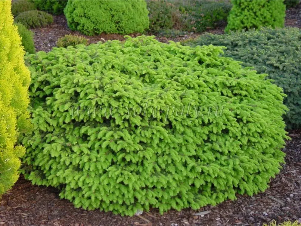 Ель обыкновенная ‘Нидиформис’ – это эффективный сорт ели, который выделяется своей компактной, пирамидальной кроной и густой листвой. Его уникальная форма, напоминающая нечто среднее между шарами, делает его идеальным выбором для украшения небольших садов и ландшафтов.