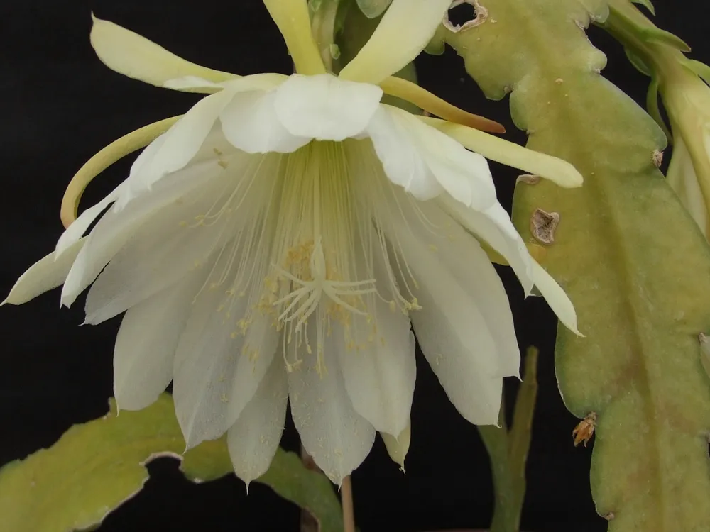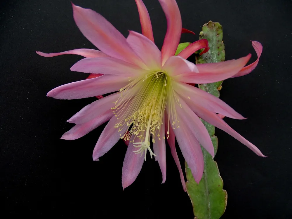 Эпифиллюм, также известный как «цветок орхидеи», – это эпифитное растение семейства Кактусовых, которое очаровывает своими крупными, нежными цветами и тропическим происхождением. Название «эпифиллюм» происходит от греческих слов «epi» (на) и «phyllon» (листьев), что отражает его естественную среду обитания – он произрастает на деревьях в тропических лесах Центральной и Южной Америки.