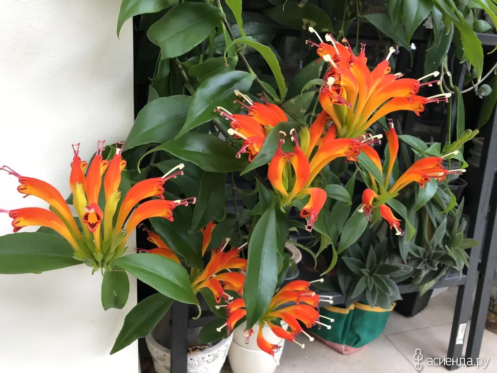 - Эсхинантус «Оранжевый» (Aeschynanthus lobbianus) отличается своими оранжевыми цветками и более крупными листьями.