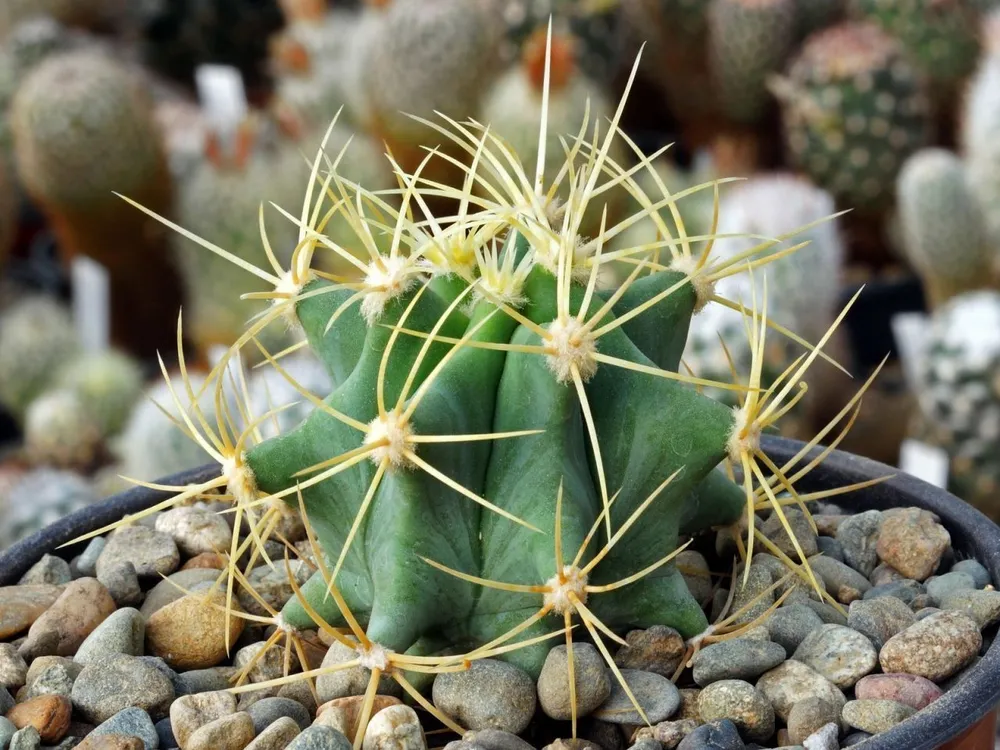 Ферокактус (Ferocactus) – это род растений семейства кактусовых, который насчитывает более 40 видов. Название рода происходит от латинских слов ferox (дикий, ожесточенный) и cactus (кактус), что отражает характерные для этих растений колючие побеги и способность выживать в суровых условиях.