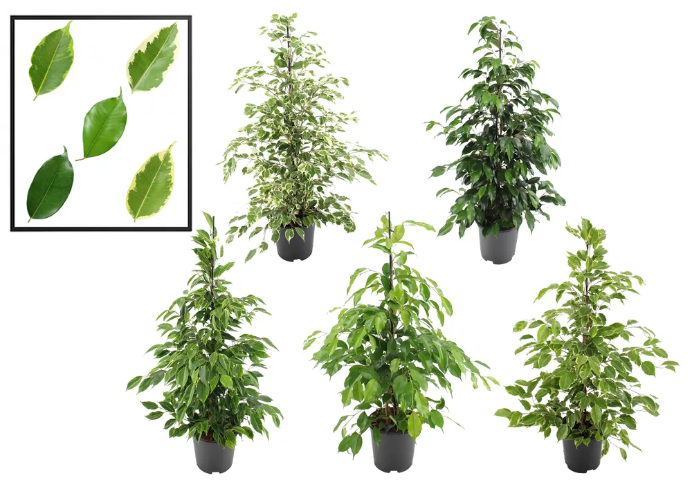 Например, сорт ‘Ficus benjamina Exotica’ отличается более крупными и глянцевыми листьями, а сорт ‘Ficus benjamina Starlight’ имеет более светлую окраску листьев с серебристым отливом.