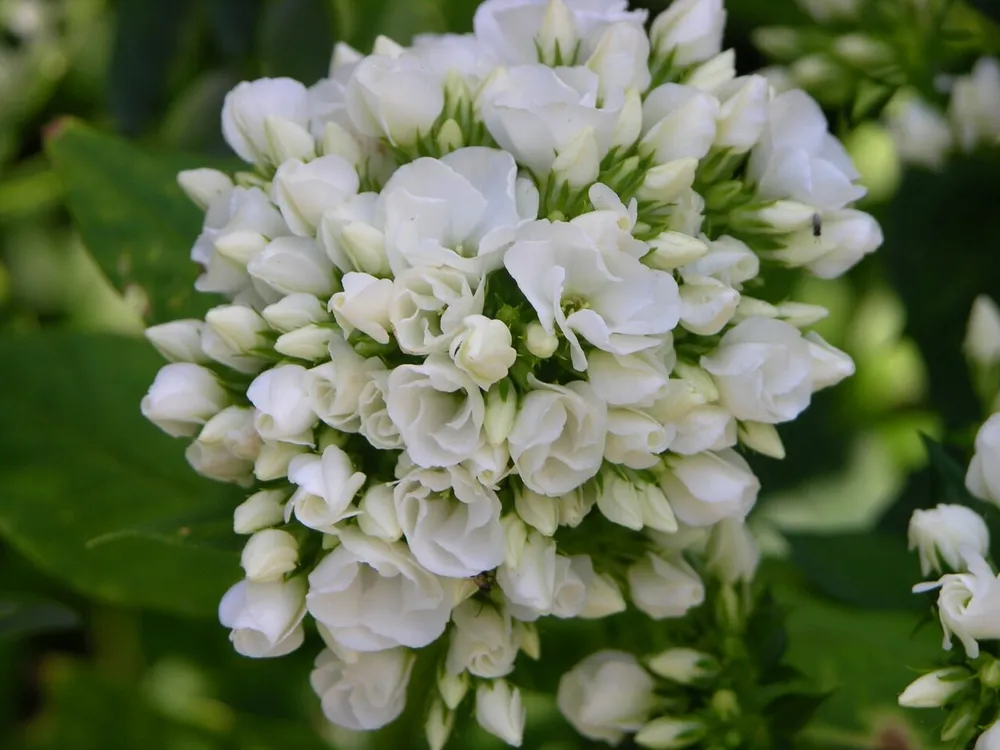 Флокс метельчатый ‘Пикок Уайт’ – это идеальный выбор для тех, кто ценит красоту и неприхотливость в садовых растениях. Его белые соцветия создают атмосферу чистоты и нежности на клумбах, а его компактные размеры позволяют использовать его в самых разных ландшафтных композициях.