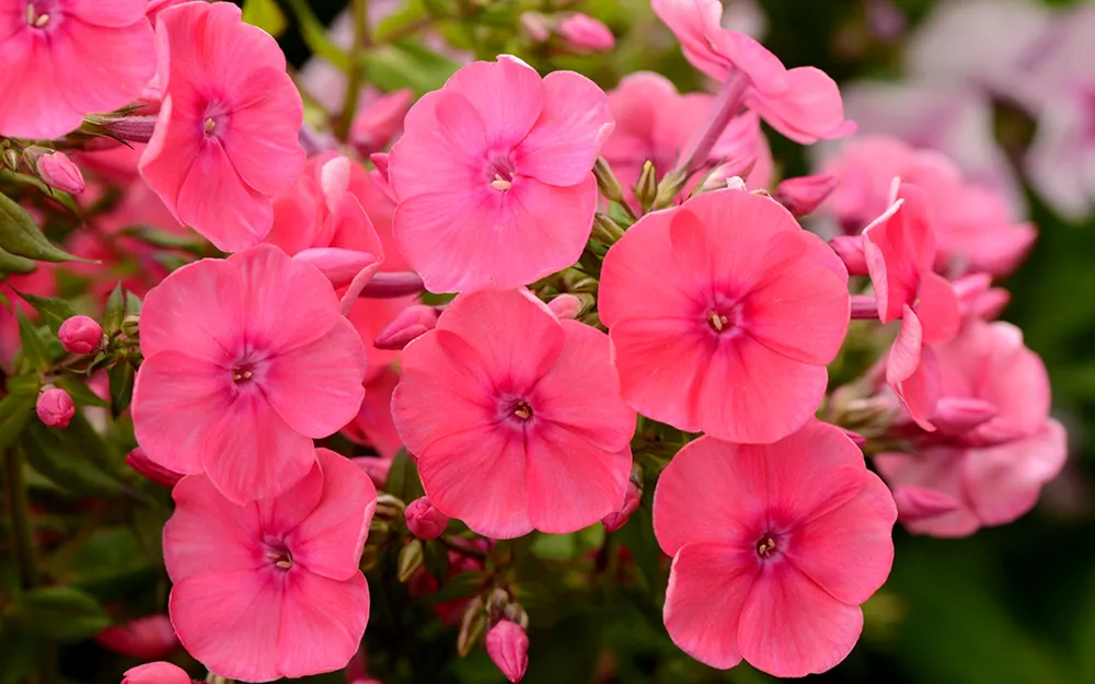 Этот флокс выделяется своей неприхотливостью к условиям выращивания и высокой устойчивостью к болезням. Его густые соцветия состоят из множества мелких цветков, создавая эффект пышной облачности. ‘Свит Саммер Кэнди’ обладает отличной способностью к повторному цветению, радуя садоводами волнами ярких красок.
