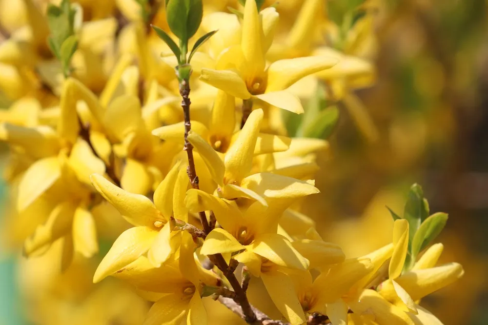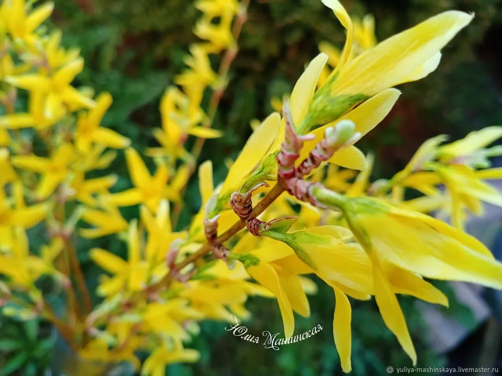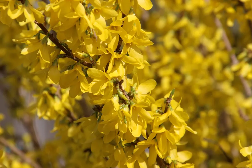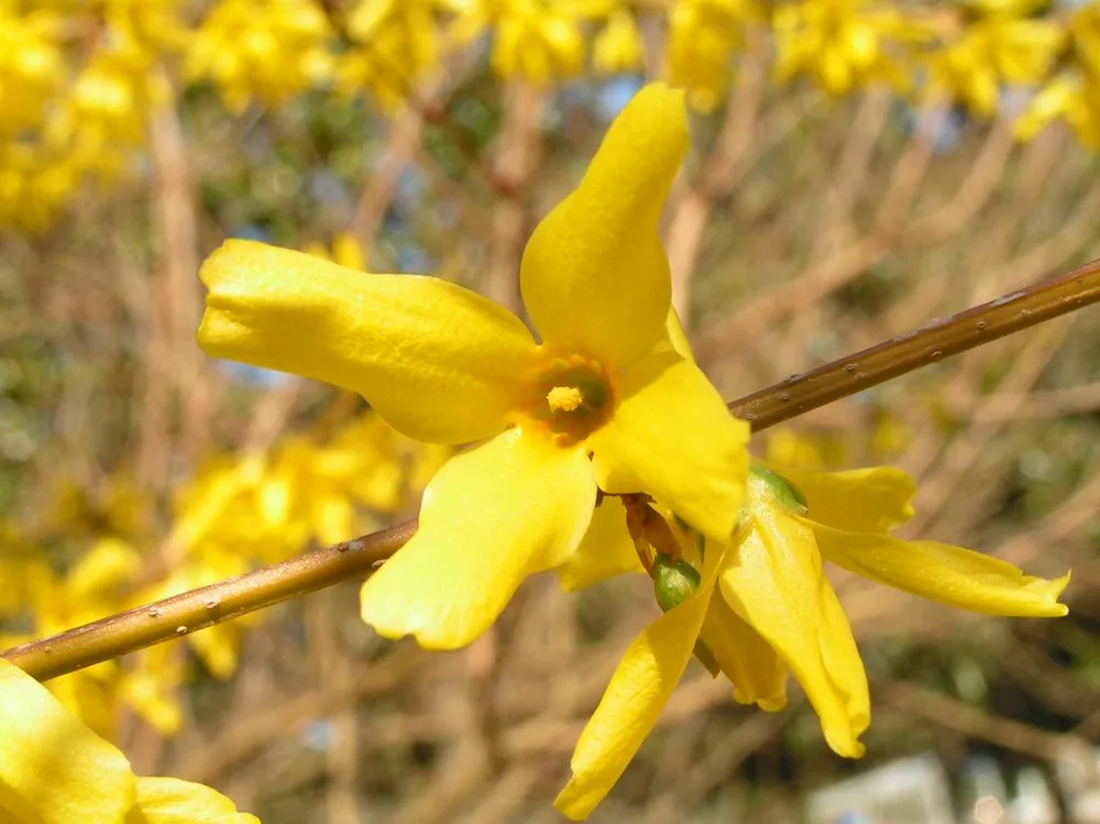 Форзиция промежуточная ‘Беатрикс Фаранд’ — это очаровательный кустарник, который станет прекрасным украшением вашего сада весной. Отличающаяся обильным цветением и нетребовательностью в уходе, она способна радовать своей красотой на протяжении долгих лет. Этот сорт был выведен селекционерами из Англии и назван в честь известной цветоводки Беатрикс Фаранд. ‘Беатрикс Фаранд’ отличается компактным размером и раскидистой кроной, что делает ее идеальным выбором для небольших садов или контейнерного выращивания. Ее яркие, насыщенно-желтые цветки появляются в начале весны, долго сохраняются и создают атмосферу тепла и радости.