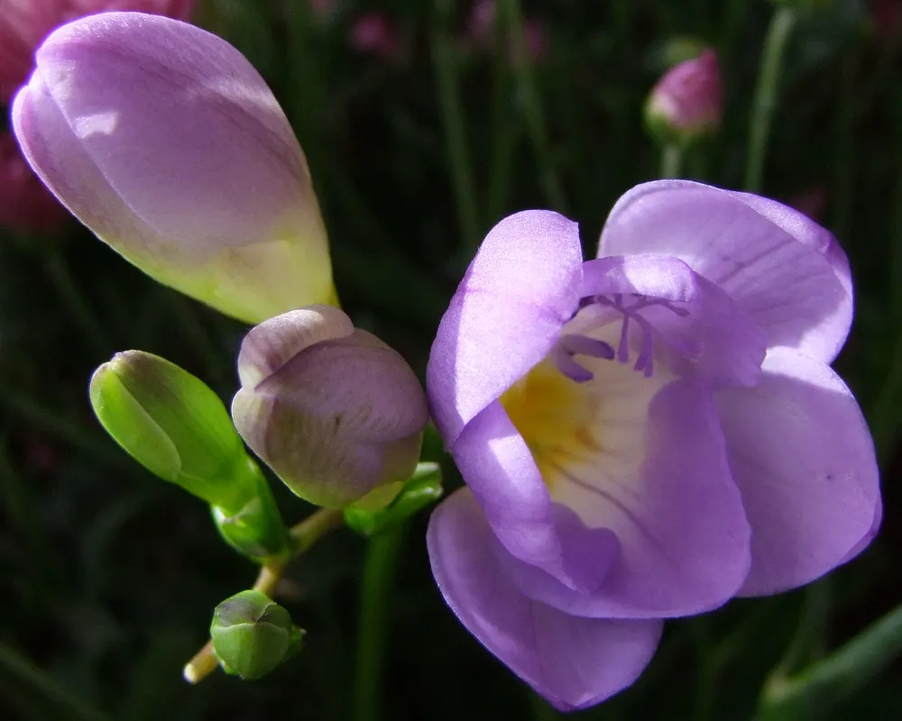 Фрезии предпочитают солнечные места, но в жарких регионах могут потребоваться притенения во время обеденного солнца. В идеале, они нуждаются в 6-8 часах прямых солнечных лучей в день.