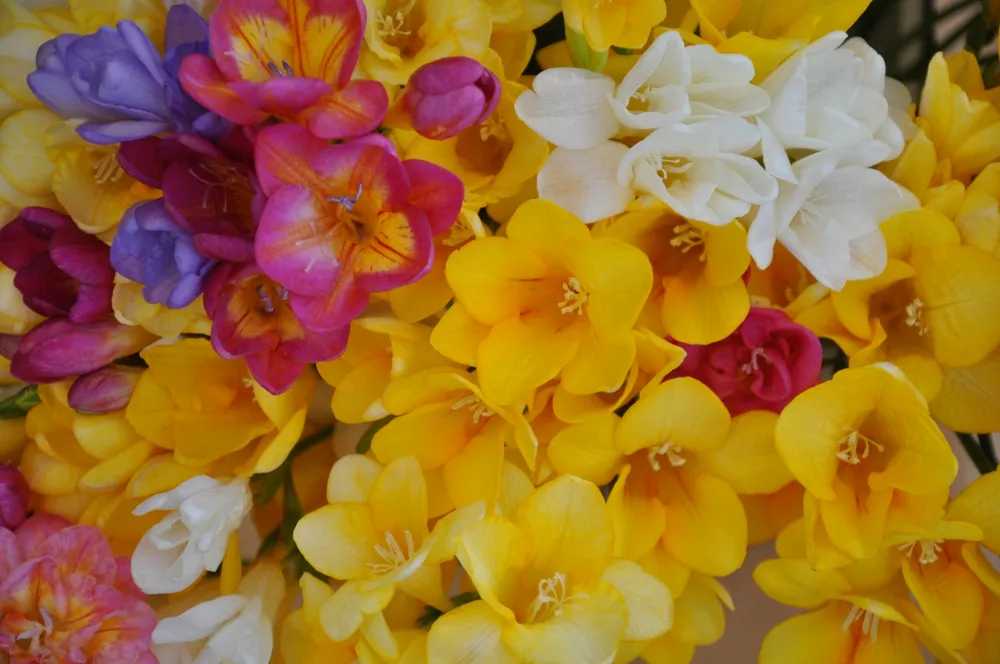 Фрезии представлены широким разнообразием сортов с различной окраской и ароматом. Например, сорт ‘Lady’ имеет нежно-розовые цветки с желтым центром, а сорт ‘Yellow River’ – яркие солнечные цветки.