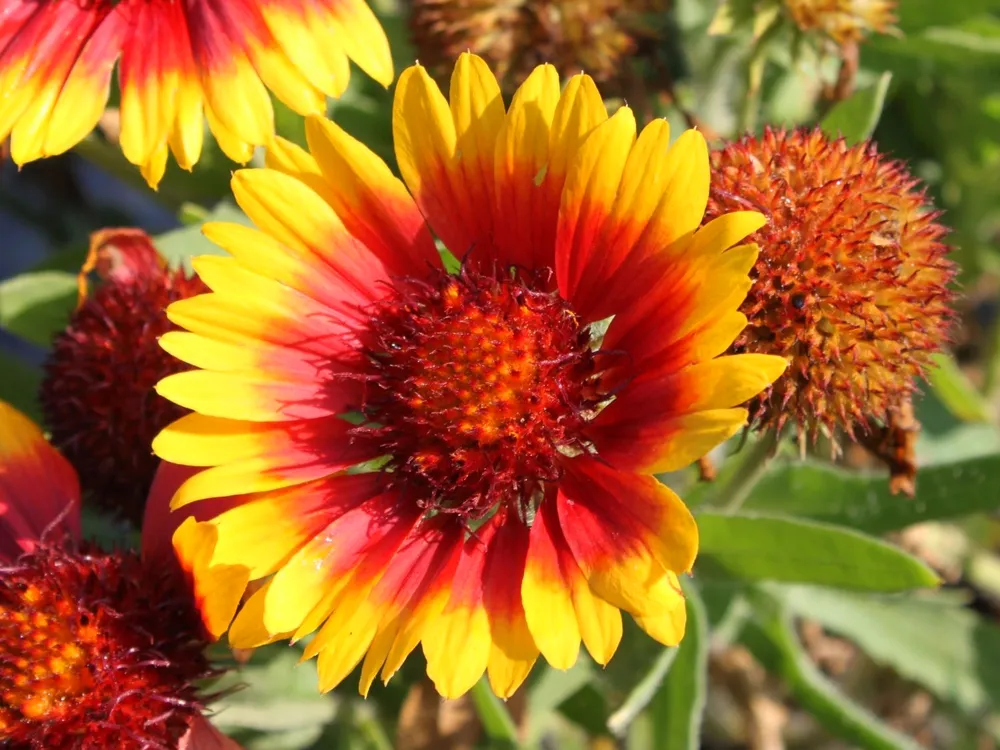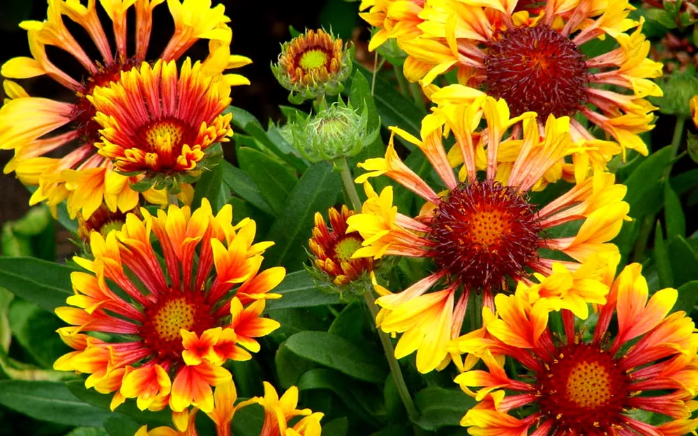 Благодаря своим пышным соцветиям, напоминающим язычки ярко-красного, оранжевого и желтого цветов, гайллардия создает яркие акценты на клумбах и бордюрных композициях. Листья растения имеют темно-зеленый окрас, а их форма напоминает ланцет или эллипс. Гайллардия относится к многолетним культурам и может радовать своим цветением на протяжении всего сезона.