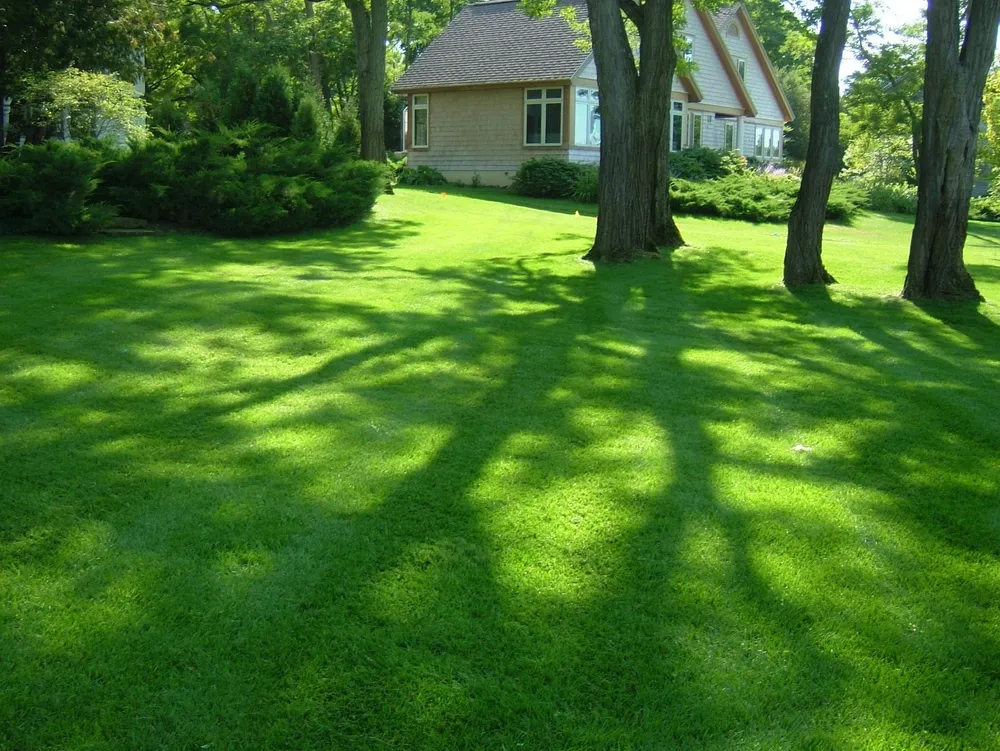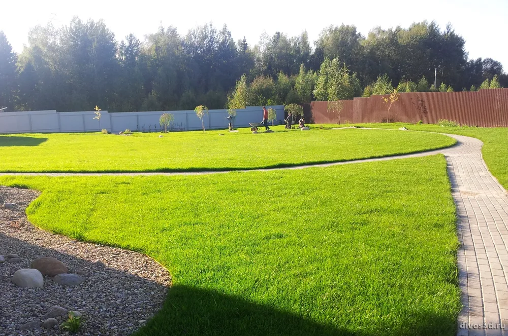 Газонная трава на солнечном участке нуждается в регулярной подкормке.