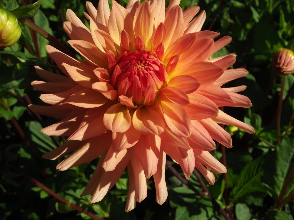 Георгину Бридж Вью Алоха можно формировать для получения более пышного цветения и придания ей желаемой формы. Удаляйте увядшие цветки (это стимулирует образование новых), а также боковые побеги, которые мешают развитию центрального стебля.