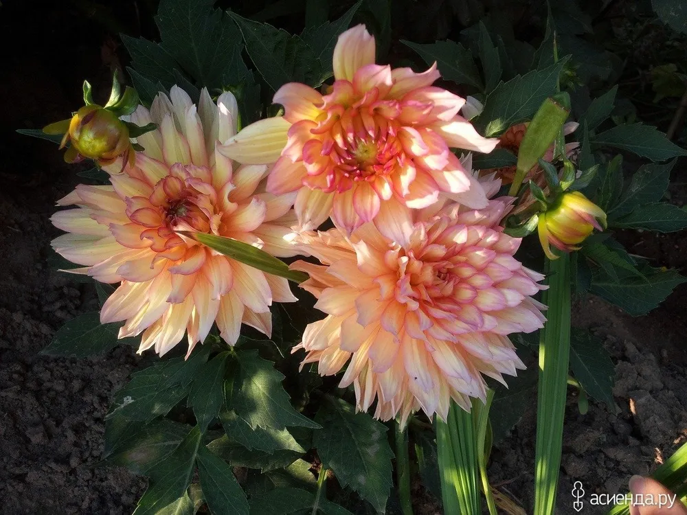 Георгина Геллери Сезан выделяется среди других сортов своим оригинальным формой цветка: махровые, пышные соцветия напоминают лепестки роз. Цветовая гамма этого сорта очень разнообразна – от светлых кремовых оттенков до насыщенных коралловых и бордовых тонов.