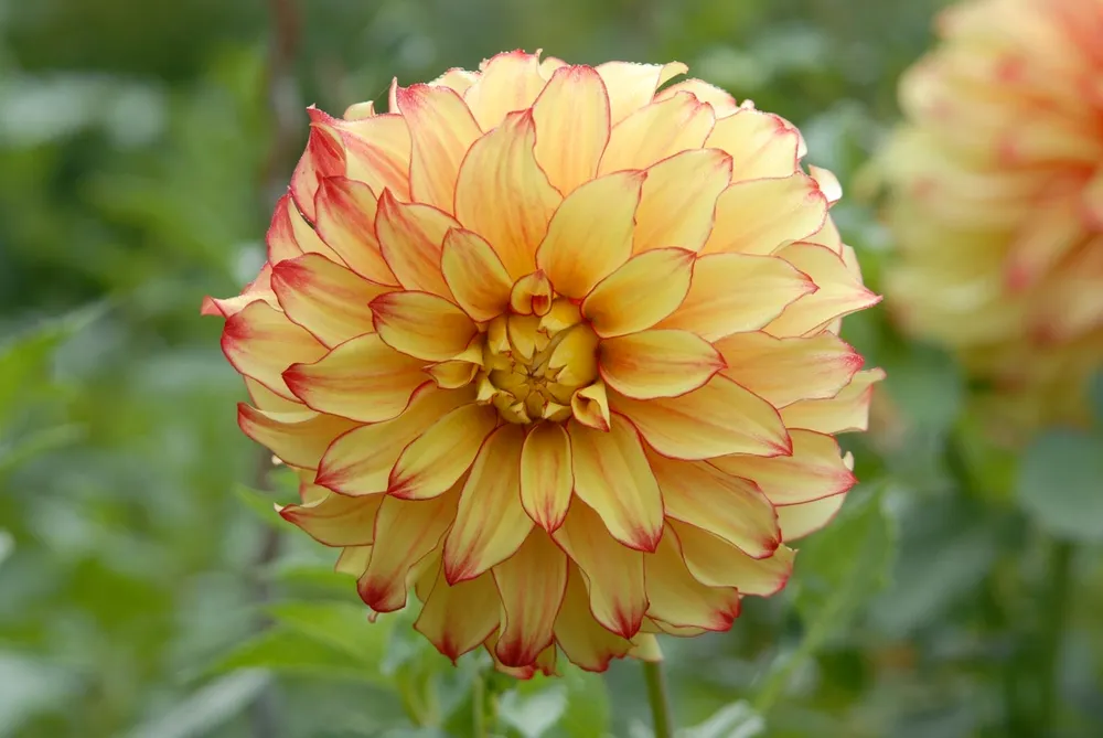 Георгина Грейсленд – это настоящий украшение любого сада: ее яркие, словно расплавленные огнем, цветы с махровыми лепестками будут радовать вас в течение всего сезона. Растение отличается компактным размером и раскидистой кроной, достигающей 60-80 см в высоту, что делает его идеальным выбором для клумб, бордюров и контейнеров.