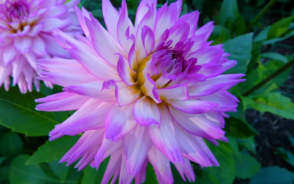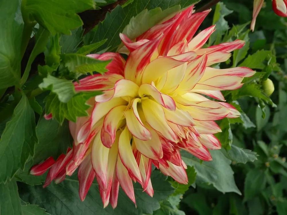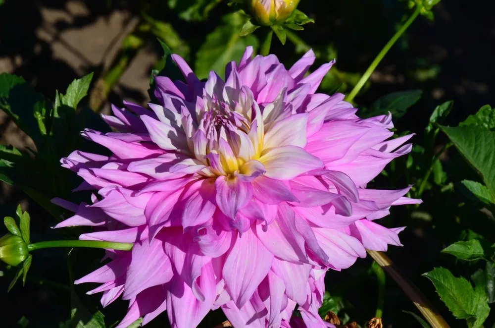 Он примечателен своей яркой расцветкой: крупные, махровые соцветия украшены оттенками розового, красного и белого. Георгина Мингус Алекс относится к раннеспелым сортам, что делает ее одним из самых популярных вариантов для начинающих садоводов.