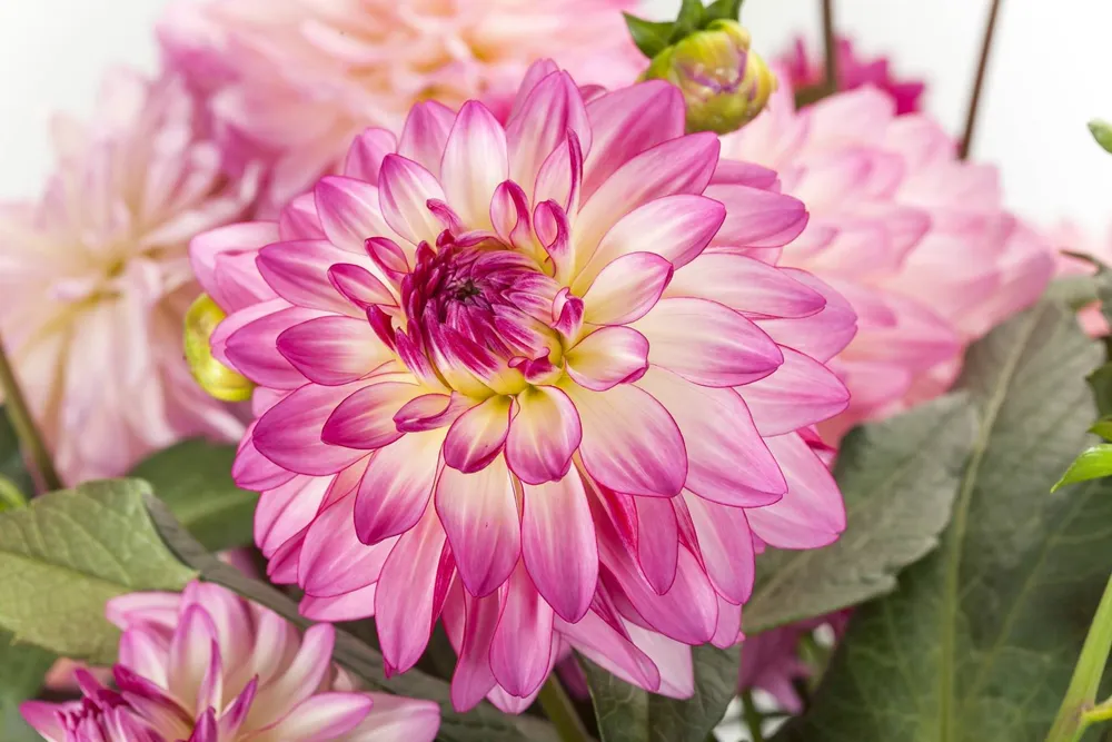 Георгина Мюзет может быть как высокорослым, так и компактным растением в зависимости от сорта.