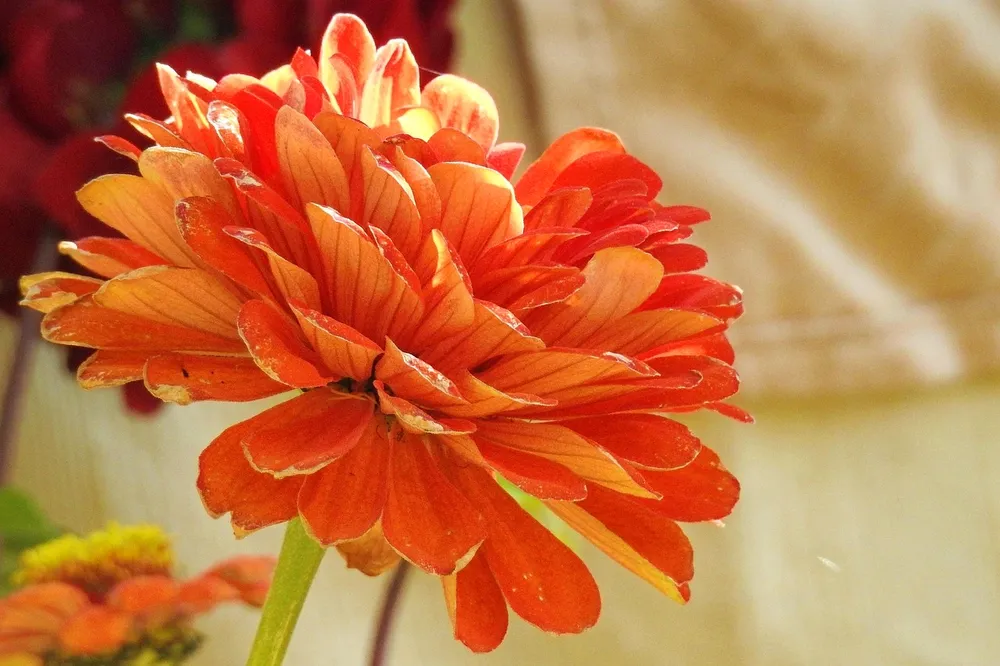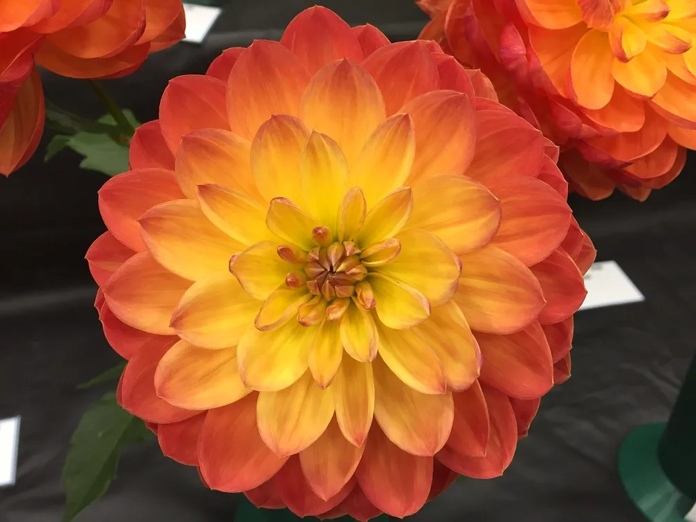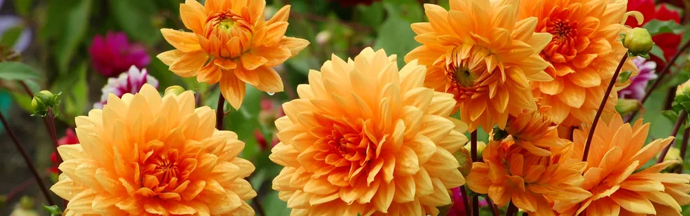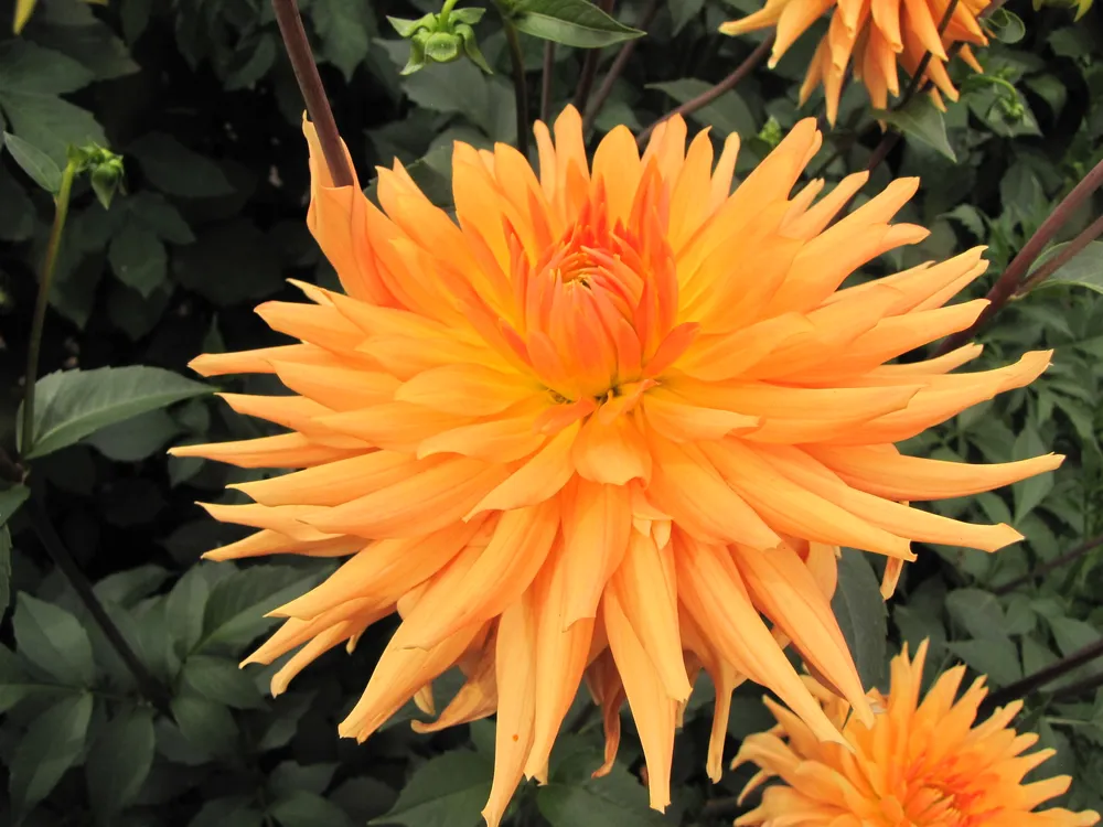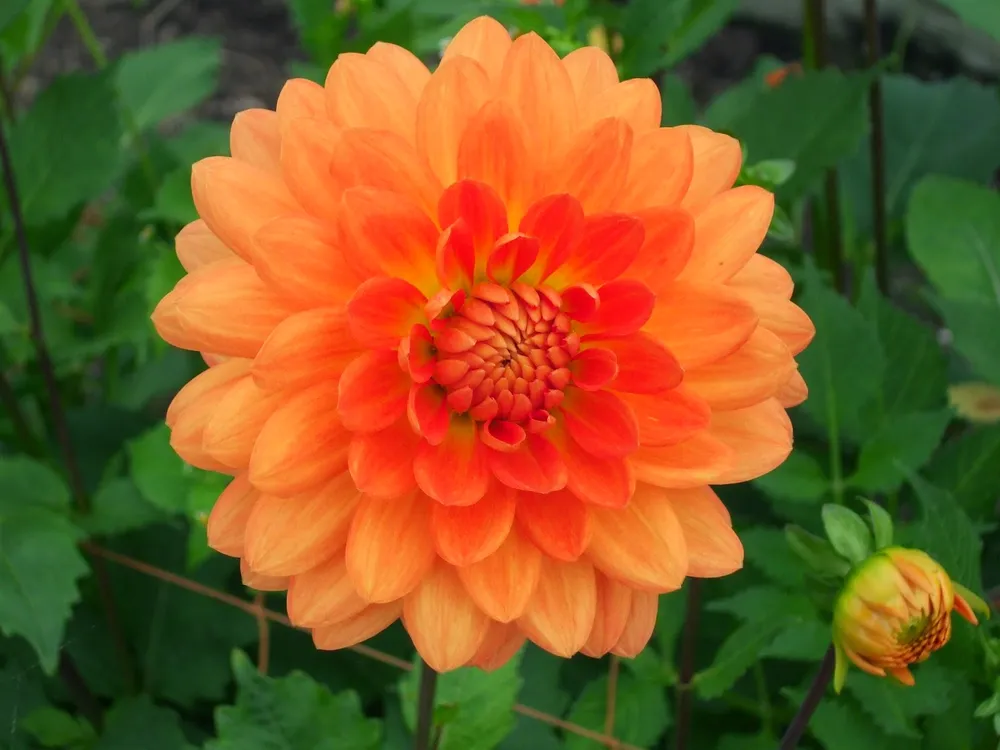 Среди георгин с оранжевыми цветками Орандж Пигми отличается более насыщенным цветом и меньшим размером.