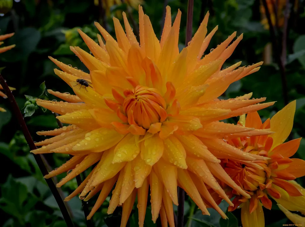 Полив – важный фактор в выращивании Георгины Оранж Наггет. Она любит умеренный полив, но не переносит переувлажнения. Воду лучше всего поливать под корень, избегая попадания на листья, чтобы предотвратить развитие грибковых заболеваний. В жаркую погоду полив необходимо осуществлять чаще, а в период дождей – сократить его количество.