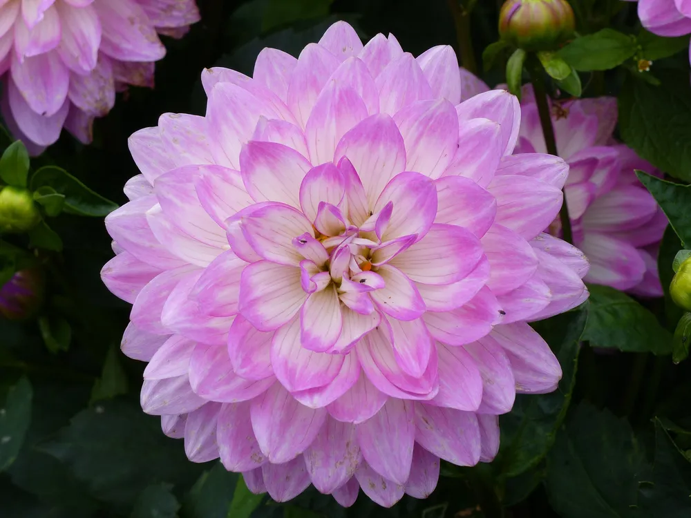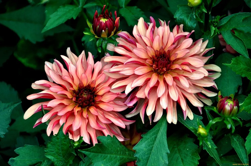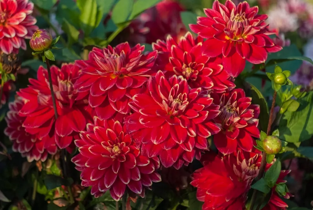 Впервые селекционеры познакомили нас с Георгиной Папл Сити в начале 21 века. С тех пор она обрела широкую популярность благодаря своей устойчивости к болезням, неприхотливости в уходе и длительному цветению. Цветы этого сорта отличаются нестандартной формой – они махровые, с множеством лепестков, образующих пышный «шар». Диаметр цветка достигает 10-12 см, а окраска может варьироваться от нежно-розового до яркого малинового цвета.
