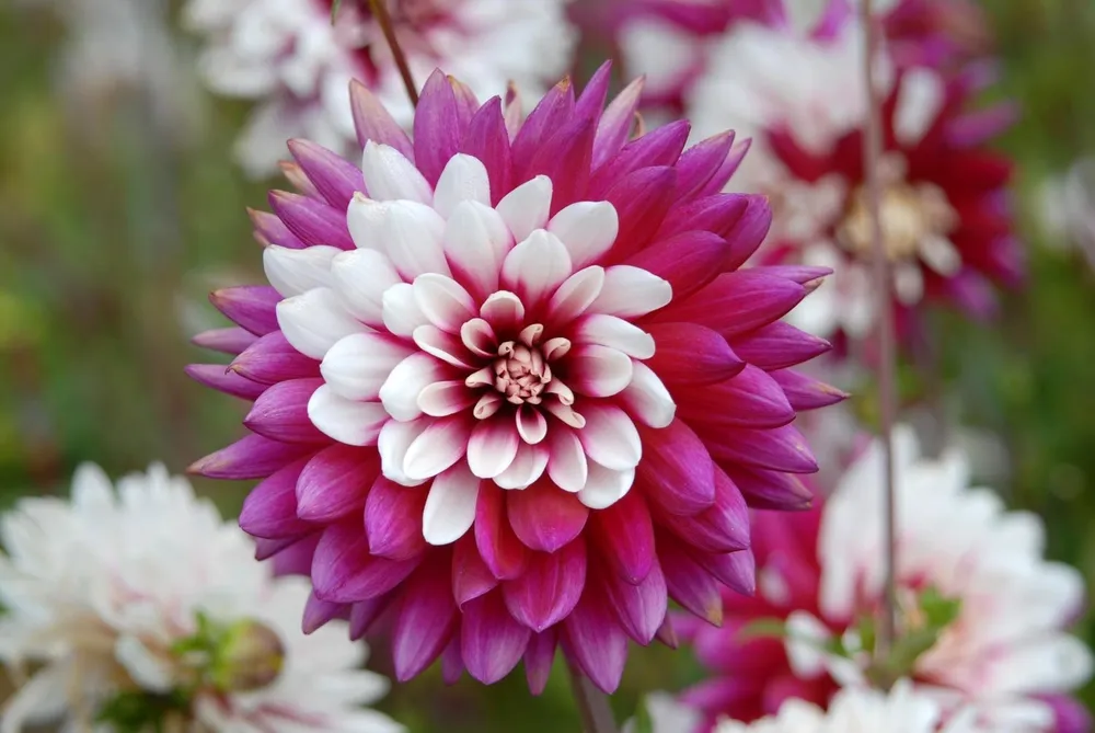 Георгина «Painted Girl» отличается от других сортов своей уникальной текстурой лепестков и необычными переходами цвета. В отличие от однотонных георгин, ее цветки словно нарисованы акварельными красками, что придает им особую привлекательность.