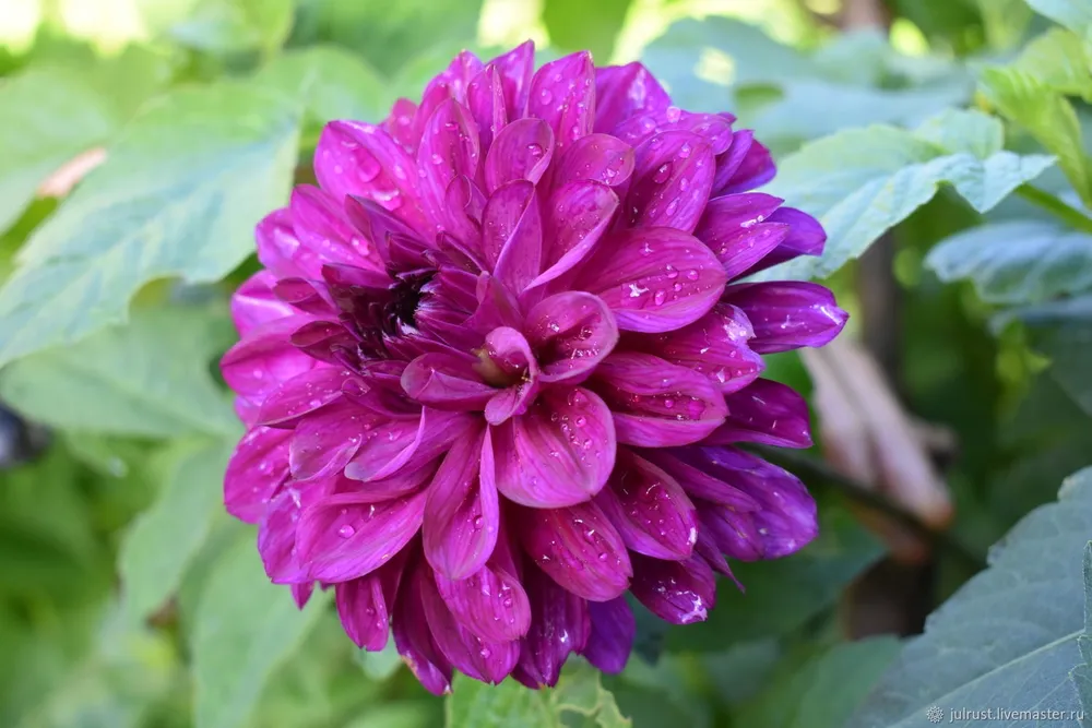 Георгинам, в том числе Purple Flame, требуется много солнца для обильного цветения. В идеале, им нужно не менее 6 часов прямых солнечных лучей в день. При недостатке света цветы будут мельче, а растение – слабее.