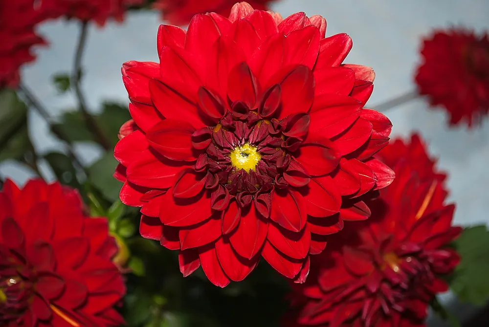 Георгина Ред Кап – сорт, который покорил сердца цветоводов своим насыщенным красным цветом и необычной формой цветка. Она является настоящим украшением любого сада: от клумб до бордюров. Эта георгина отличается пышным цветением и высокой стойкостью к неблагоприятным условиям. Георгины Ред Кап – это представитель высокорослой группы сортов, которые достигают в высоту 70-90 сантиметров. Цветки этого сорта крупные, махровые, с волнистыми лепестками, имеющими темно-красный оттенок. Их диаметр может варьироваться от 10 до 15 сантиметров. Листья растения темно-зеленые, глянцевые, собраны в розетку у основания стебля. Цветение Ред Кап начинается в середине лета и продолжается до первых заморозков.