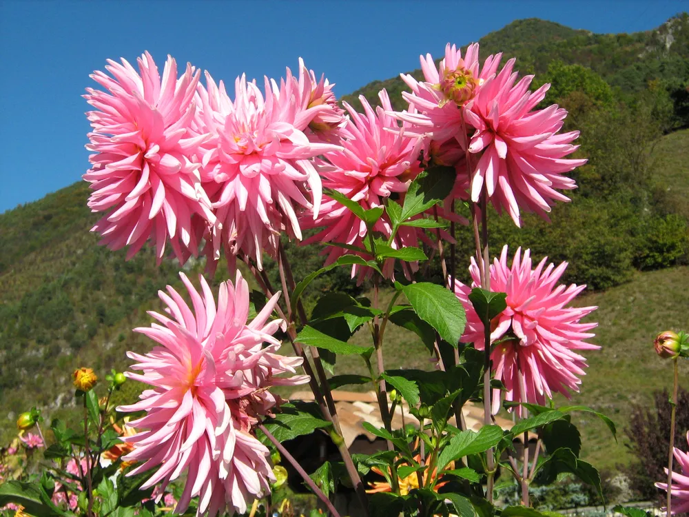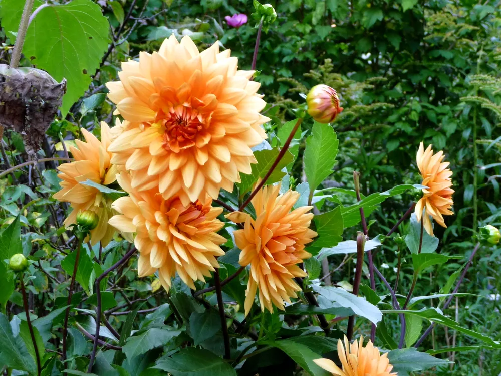 Георгина Рембрандт обычно не нуждается в формировании. Но если вы хотите получить пышное цветение и более компактный куст, можно прищипнуть верхушку побегов во время роста. Это стимулирует рост боковых побегов.