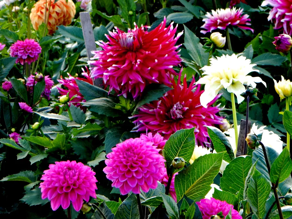 - Подвязка: с помощью опорных конструкций можно подвязать стебли георгины, чтобы они не ломались под тяжестью цветков.