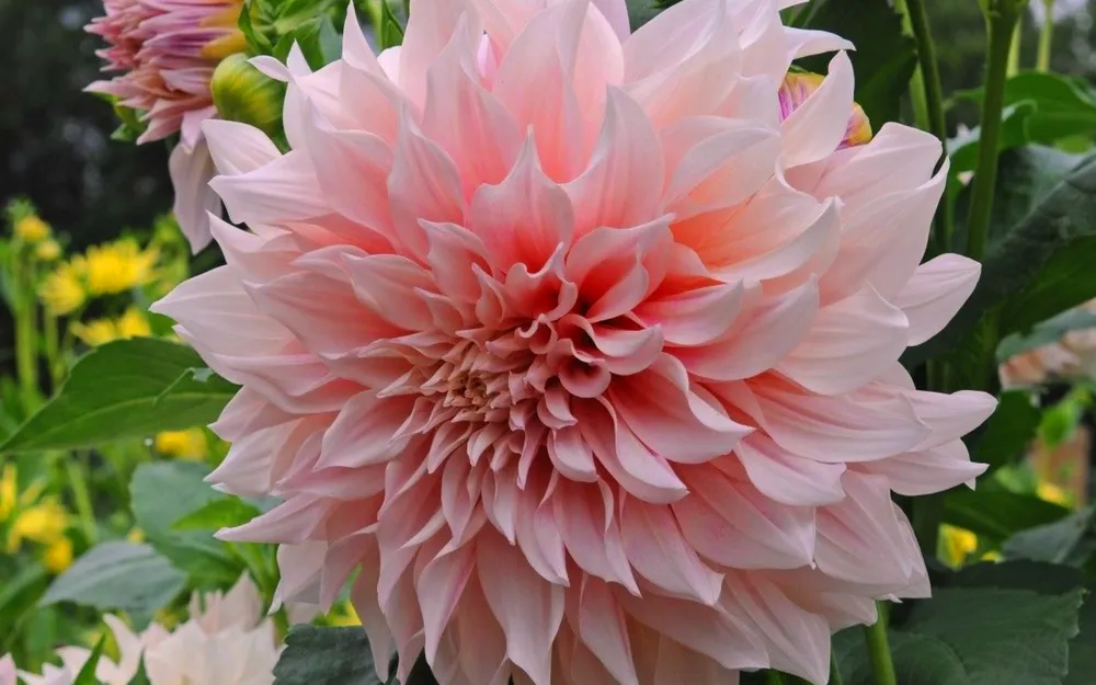 Георгины Учу отличаются крупными махровыми соцветиями диаметром до 20-25 см с бархатистой текстурой лепестков. Цветовая гамма варьируется от насыщенного красного и глубокого бордового до нежно-розового и белого. Высота растений достигает 1,2-1,5 метра, а мощный стебель способен выдержать тяжесть огромных цветков, не требуя дополнительной подпорки.