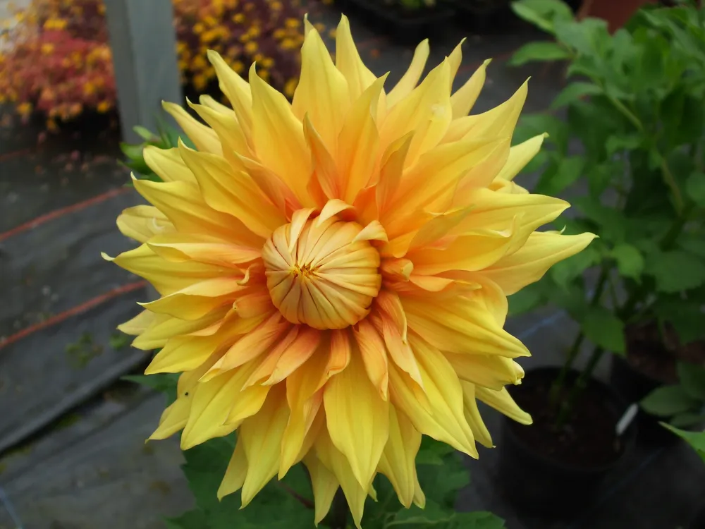 Георгина Ванкувер выделяется среди других сортов георгин своими крупными размерами и массивными цветками.