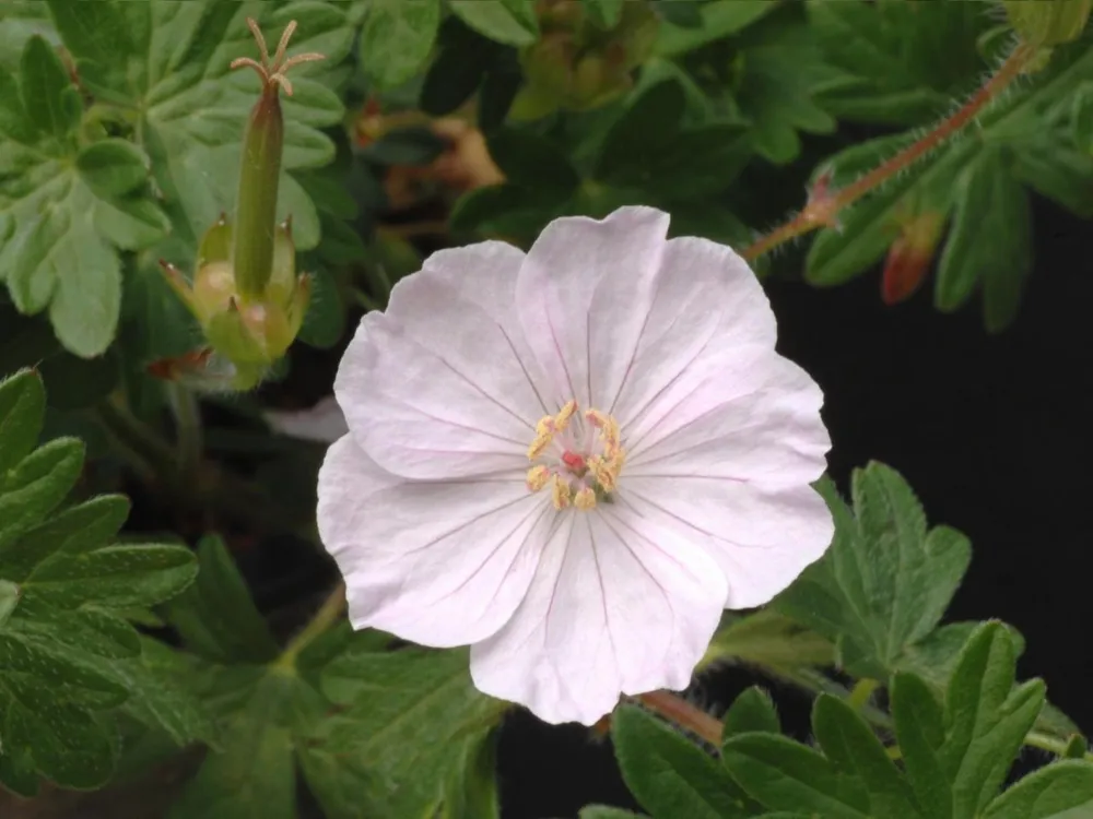 Герань кроваво-красная Альбум отличается от других сортов герани своими нежно-розовыми цветками с белым центром. Многие сорта герани обладают яркими красными, розовыми или фиолетовыми цветами.