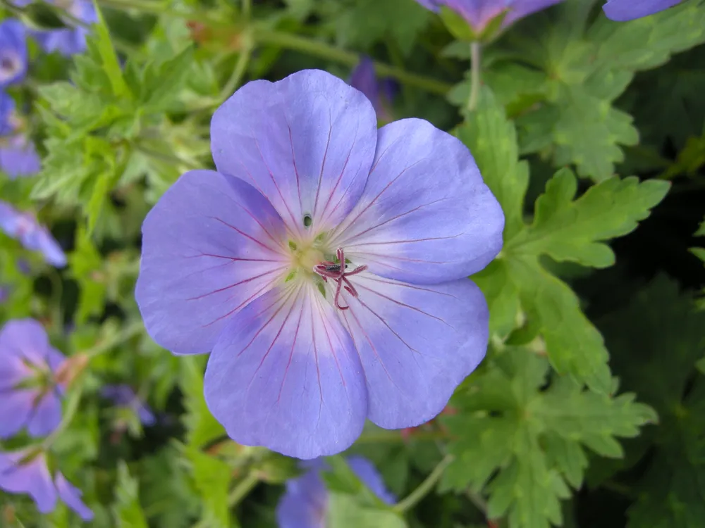 Герань Блю Санрайз выделяется среди других сортов своей яркой небесно-голубой окраской.