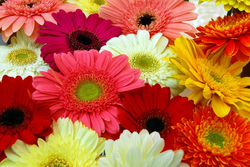 Герберы отличаются от других садовых растений своей широкой цветовой гаммой. В сравнении с розы, например, гербера имеет более простые формы цветков и не нуждается в столь тщательном уходе.