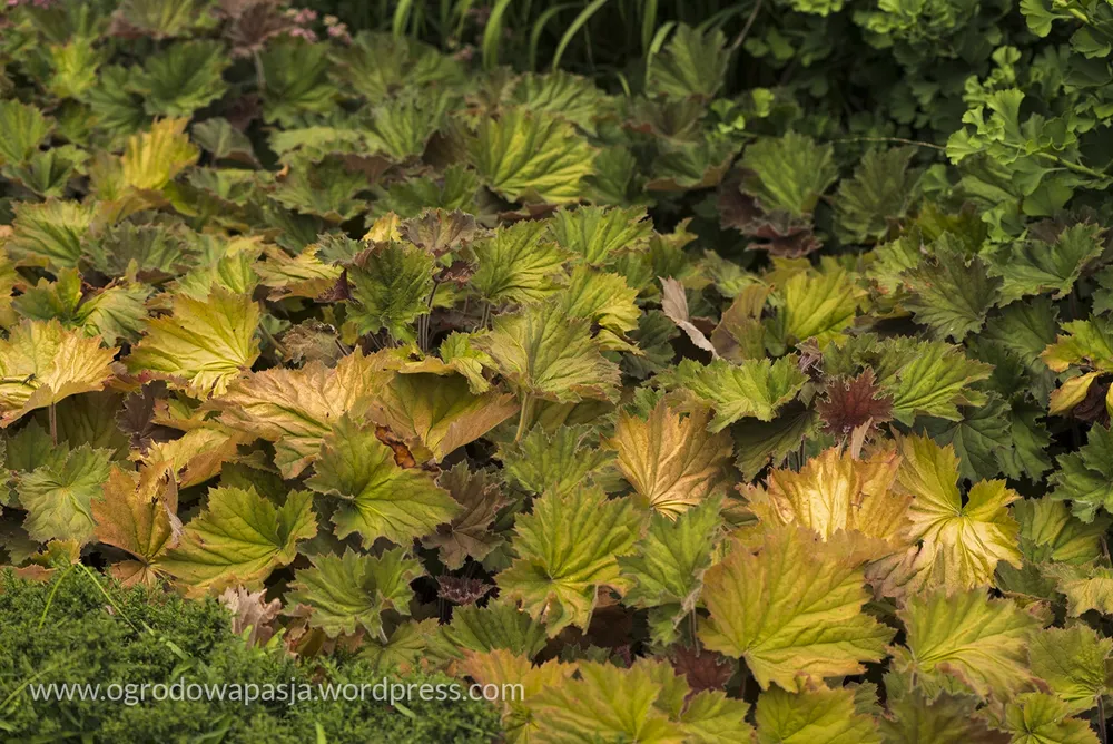 Например: Гейхера ‘Palace Purple’ имеет более мелкие листья с фиолетовым оттенком, а гейхера ‘Variegata’ известна своими бело-зелеными листьями.