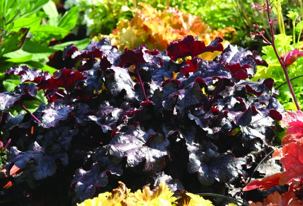 Благодаря своим декоративным качествам гейхера Божоле станет украшением вашего сада в течение всего сезона. Ее темно-бордовая листва прекрасно сочетается с другими растениями, создавая интересные цветовые контрасты.