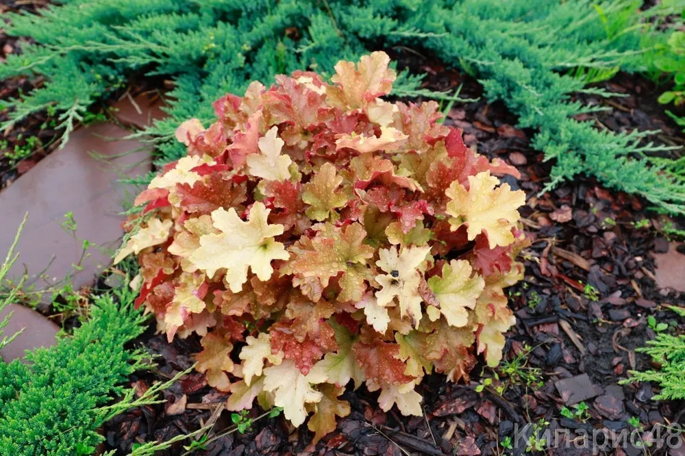 Гейхера ‘Отумн Ливс’ — это очаровательный сорт гейхеры, который покорил сердца садоводов своим неповторимым окрасом листьев. Этот декоративный многолетник относится к семейству каменных и отличается удивительной устойчивостью к болезням и вредителям.
