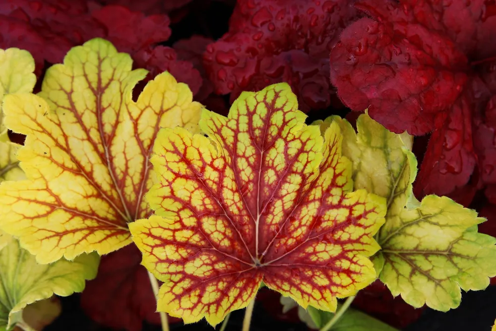 В то время как ‘Marmalade’ имеет более светлую листву с оттенком оранжевого, ‘Red Lightning’ выделяется своим глубоким бордовым цветом.