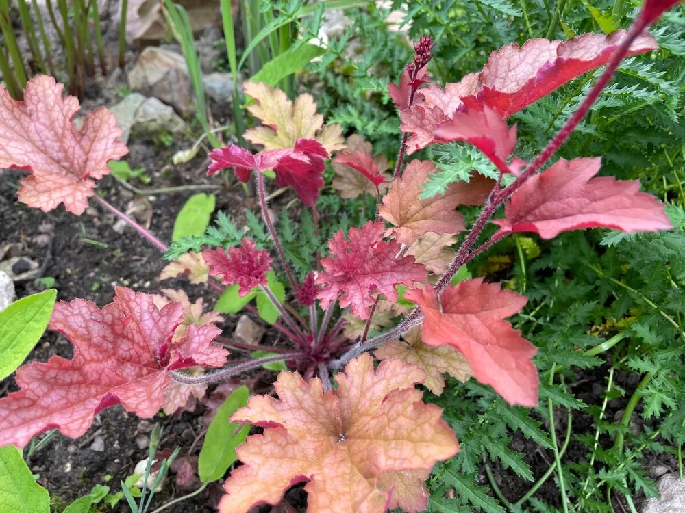 Не бойтесь экспериментировать с посадкой гейхеры Шампань: она прекрасно сочетается с другими цветами, кустарниками и травянистыми растениями, создавая неповторимые цветовые композиции.
