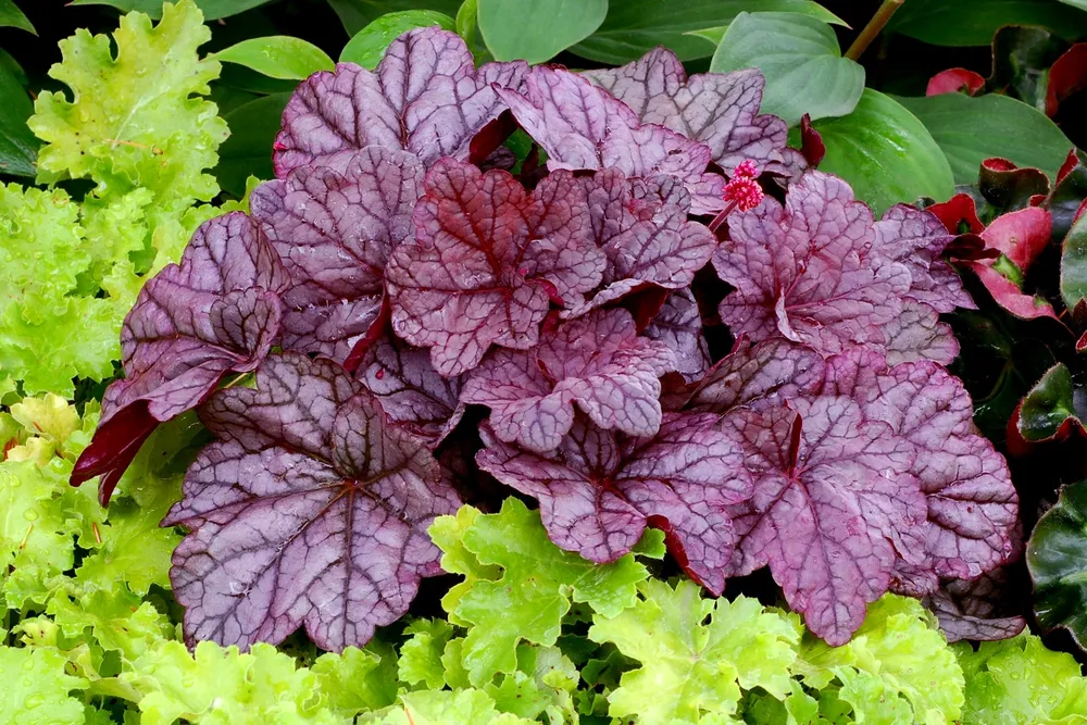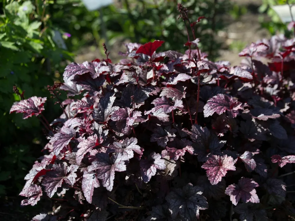 Шуга Плам отличается от других сортов гейхеры своей необычной окраской листьев – пурпурные прожилки на серебристо-зеленой основе делают ее очень привлекательной для цветоводов. По сравнению с некоторыми другими сортами, Шуга Плам более компактна в росте и подходит для выращивания в небольших садах или контейнерах.