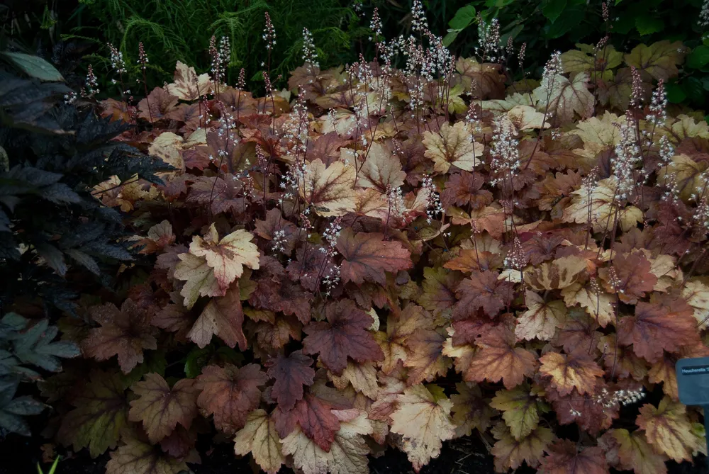 Гейхера Циркус выделяется среди других сортов гейхеры своей яркой пестролистностью. Листья некоторых сортов, например, гейхеры ‘Variegata’ или ‘Sunburst’, имеют более светлые и менее насыщенные цвета.