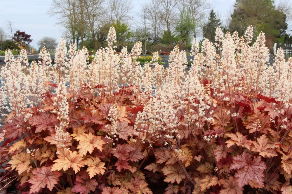 Гейхера ‘Вайт Клауд’ – это компактный сорт с ажурными листьями серебристо-зеленого цвета, которые создают контраст к нежно-розовым цветкам. Своё название сорт получил благодаря своей причудливой форме листьев, напоминающих облака, и белоснежным лепесткам цветов. ‘Вайт Клауд’ прекрасно подойдет для любого сада: она эффектно смотрится как в одиночной посадке, так и в групповых композициях.