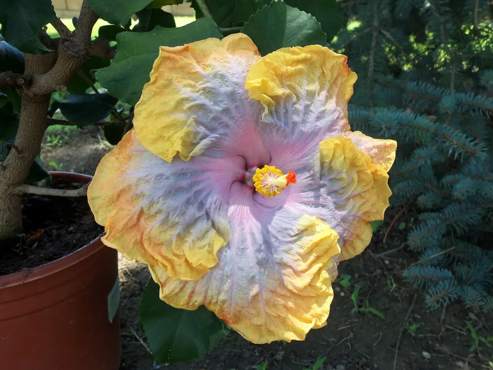 * Для лучшего развития корневой системы рекомендуется проводить регулярную пересадку растения в более просторный горшок каждый год весной. * В холодных регионах гибискус креол «Леди» необходимо держать в помещении зимой при температуре не ниже 15°C, обеспечивая ему достаточно света.