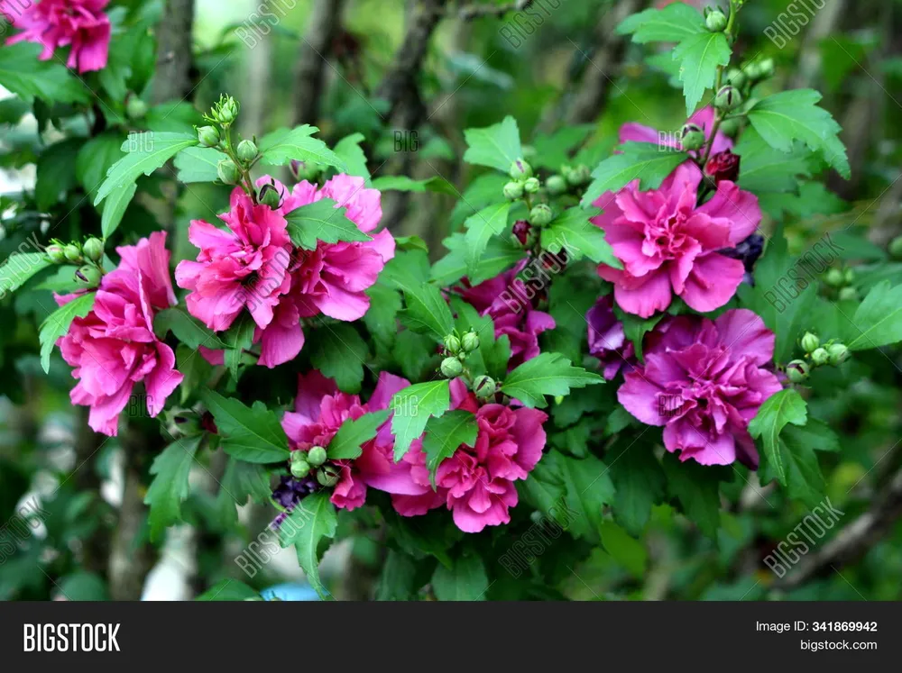 Гибискус сирийский Френч Кабаре Пепл выделяется среди других сортов гибискуса своими крупными махровыми цветами необыкновенного малинового оттенка.