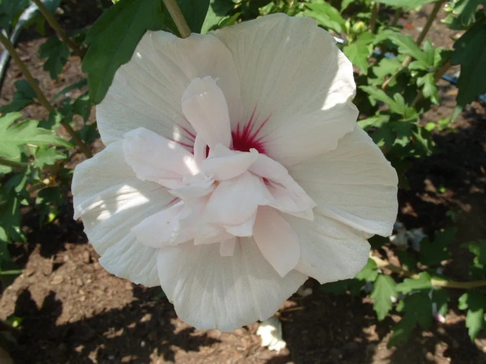 Ошибка при поливе — переувлажнение: корни гибискуса ‘Уайт Чиффон’ подвержены гниению при излишнем увлажнении.