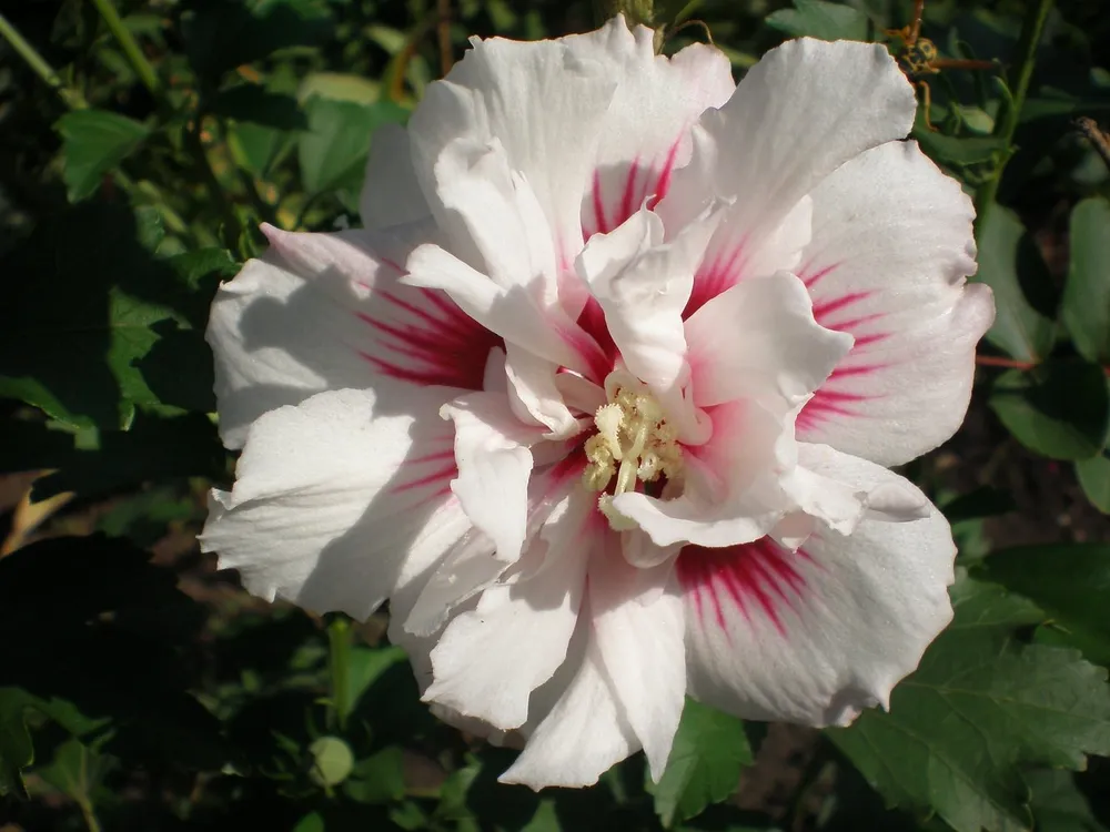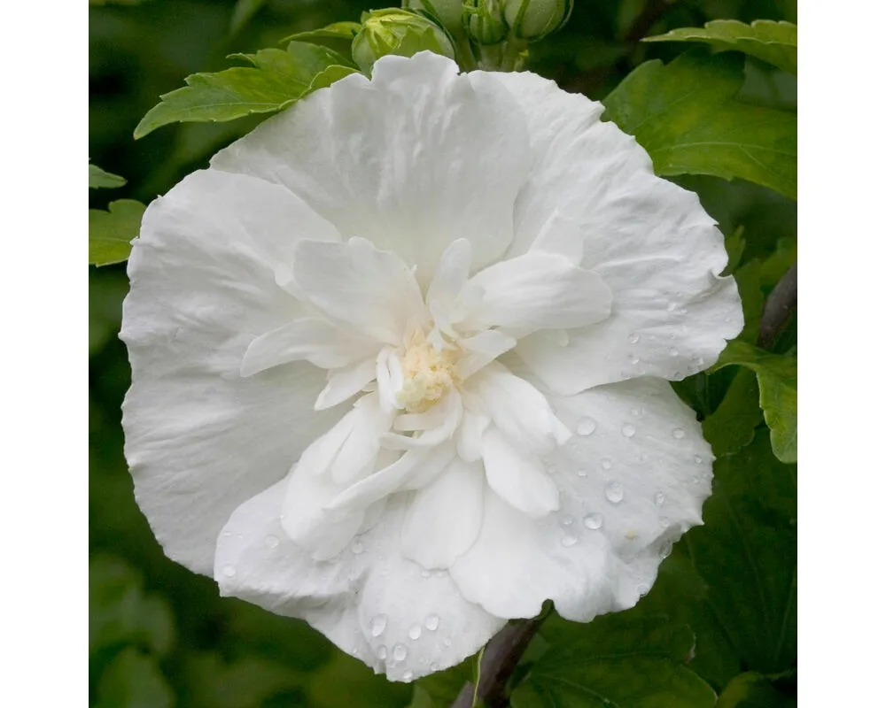 Гибискус сирийский ‘Уайт Чиффон’ — это восхитительный представитель рода гибискуса, который покорил сердца цветоводов своей изысканностью и неприхотливостью. Этот сорт, выведенный селекционерами, поражает своим белоснежным цветом лепестков, которые словно невесомый шелк развеваются на ветке. Благодаря своему нежному виду ‘Уайт Чиффон’ идеально подходит для украшения садовых клумб, балконов и террас.