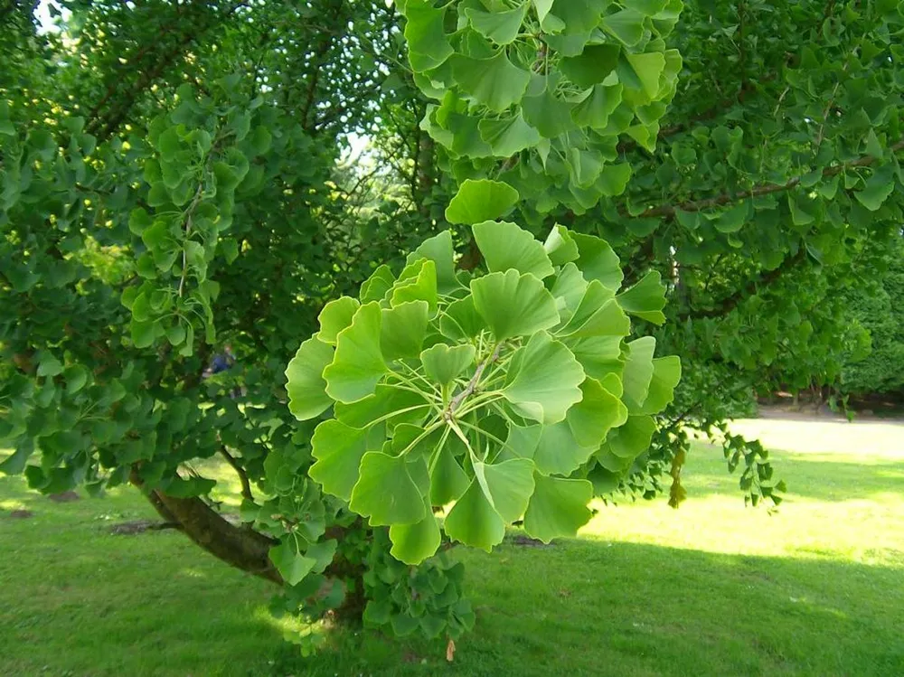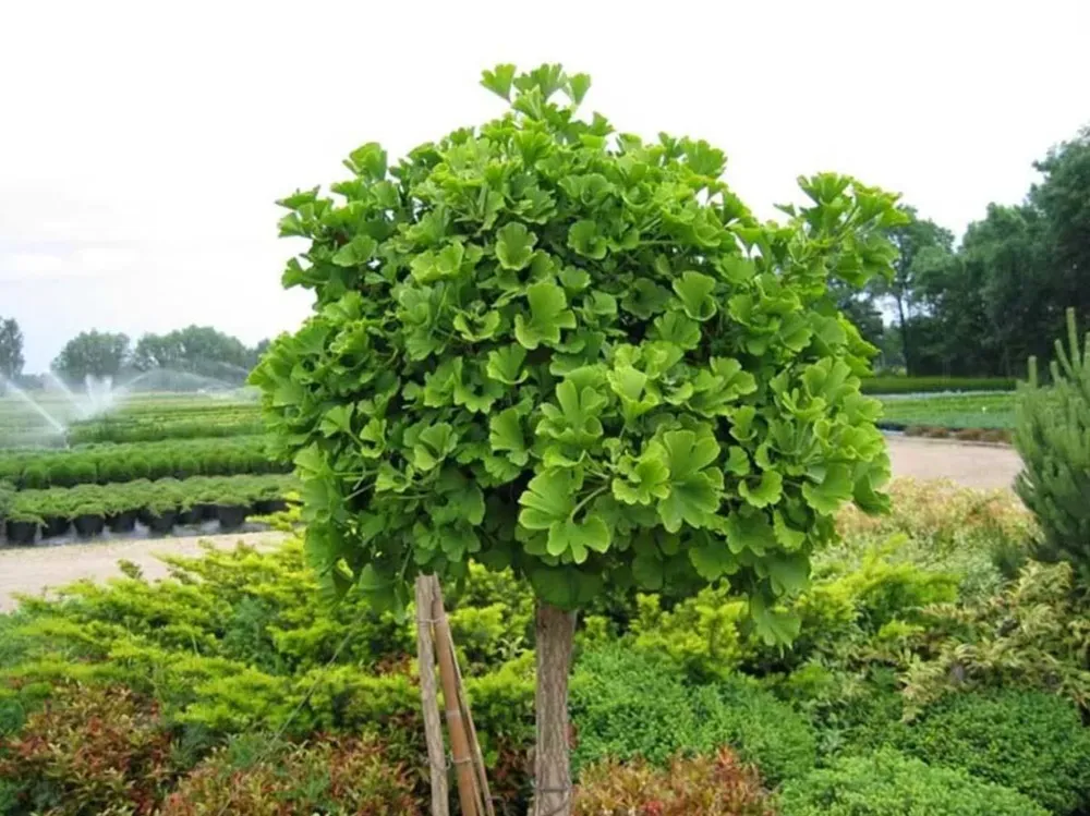 Гинкго – вечнозеленый листопадный вид с раскидистой кроной. Его уникальные плоские листья похожи на маленькие вентиляторы и окрашиваются в яркий желтый цвет осенью, создавая потрясающее зрелище. Несмотря на свою древность, гинкго адаптируется к городским условиям и может расти даже на песчаных почвах.