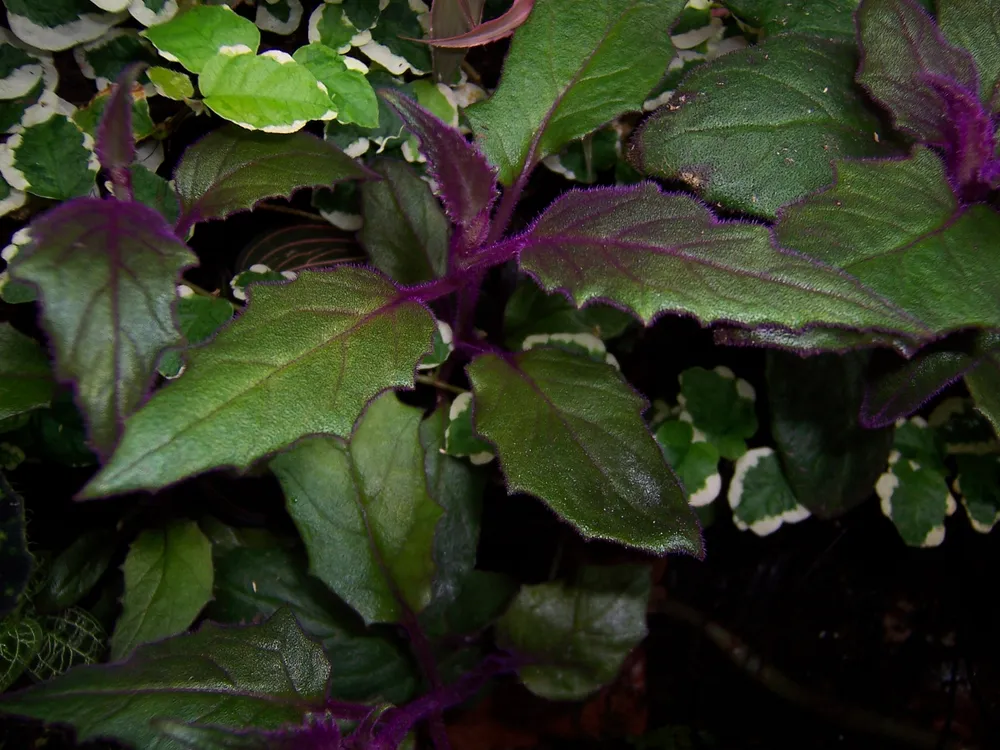 - Gynura divaricata (гинура разноцветная) — имеет зеленые листья с пурпурными прожилками и белыми краями. Цветет розовыми соцветиями.